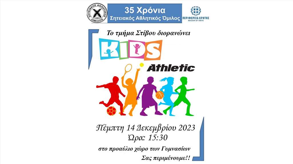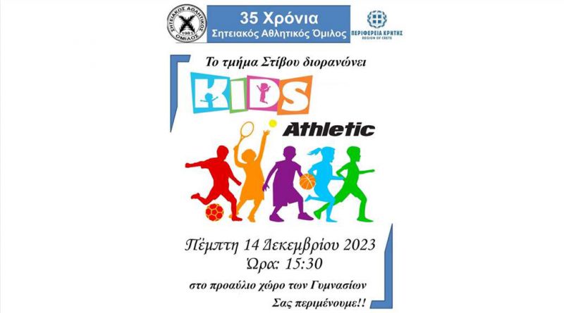 Ο Σητειακός Α.Ο. με την υποστήριξη της Περιφέρειας Κρήτης διοργανώνει σήμερα Πέμπτη 14 Δεκεμβρίου και ώρα 15:30 στον προαύλιο χώρο των γυμνασίων Σητείας τη «γιορτή στίβου νέων». Σκοπός της εκδήλωσης είναι οι μικροί αθλητές να εξασκηθούν σε αγωνίσματα στίβου χρησιμοποιώντας τον εξοπλισμό «Κids Athletics», που έχει διαθέσει η Περιφέρεια Κρήτης σε όλες τις διευθύνσεις Πρωτοβάθμιας Εκπαίδευσης όλου του νησιού.