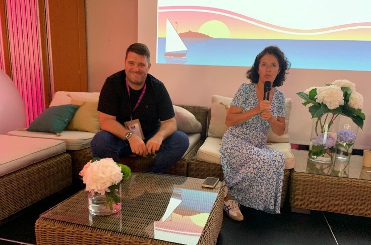 Η Irène Tolleret μιλά στο συνέδριο των Οινοπαραγωγικών Συνεταιρισμών (Ludovic Roux, πρόεδρος των Συνεταιρισμών Οινοπαραγωγών της Occitanie στα αριστερά της)