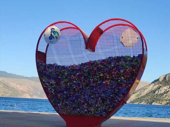 Οι δύο αυτές κόκκινες καρδιές έρχονται να προστεθούν σε ισάριθμες που έχουν τοποθετηθεί από τον Δήμο ΔΑΑ από πέρυσι στη προβλήτα της Αντίκυρας και ήδη γεμίζουν με πλαστικά καπάκια και αγάπη!