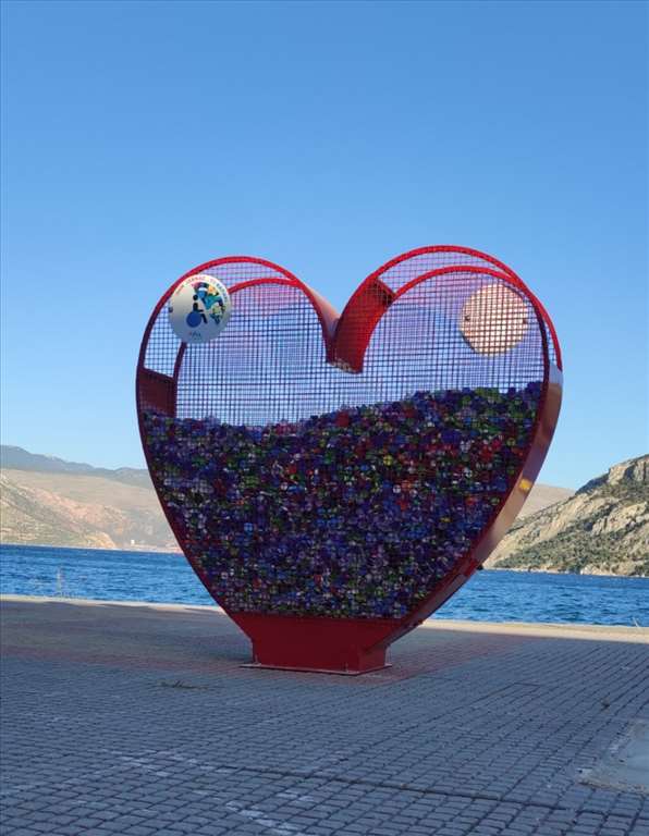 Οι δύο αυτές κόκκινες καρδιές έρχονται να προστεθούν σε ισάριθμες που έχουν τοποθετηθεί από τον Δήμο ΔΑΑ από πέρυσι στη προβλήτα της Αντίκυρας και ήδη γεμίζουν με πλαστικά καπάκια και αγάπη!