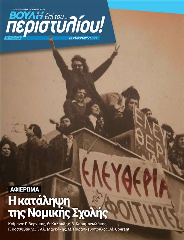Μ’ ένα μεγάλο αφιέρωμα στην κατάληψη της Νομικής Σχολής τον Φεβρουάριο του 1973, αναρτήθηκε σήμερα στον ιστότοπο του Κοινοβουλίου το νέο, 72ο τεύχος του ηλεκτρονικού περιοδικού της Βουλής «Επί του… περιστυλίου!».