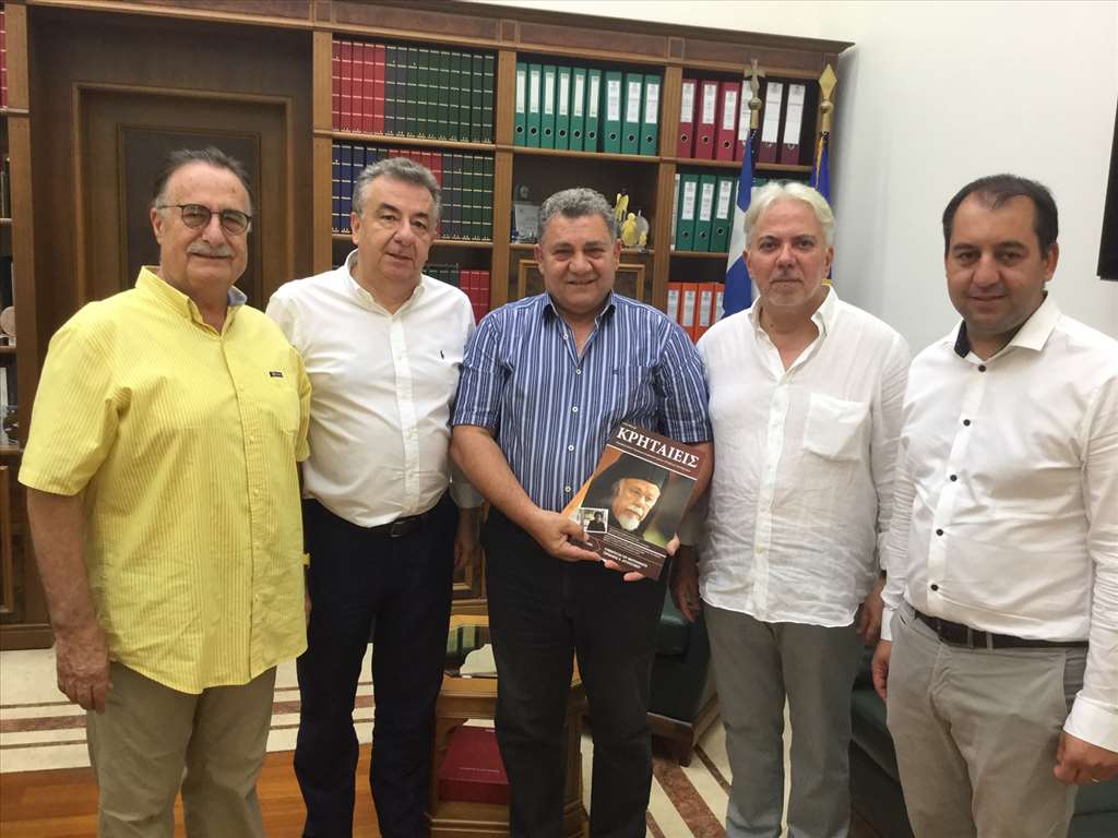 Η «καρδιά» των αποδήμων Κρητικών «κτυπά» στην Κρήτη στο τετραήμερο συνέδριο του Παγκοσμίου Συμβουλίου Κρητών, απ’ όπου η φωνή και το μήνυμα της Κρήτης και το λογοτεχνικό-ποιητικό έργο του «Ερωτόκριτου» θα σταλεί ηχηρό σε όλη την Ελλάδα και σε κάθε σημείο του πλανήτη». Αυτό τόνισαν σήμερα-παραμονές του συνεδρίου-στην συνάντηση τους ο Περιφερειάρχης Κρήτης Σταύρος Αρναουτάκης με τον Πρόεδρο του Παγκοσμίου Συμβουλίου Κρητών Μανόλη Κουγιουμουτζή, και τους π. Προέδρους Γιώργο Αεράκη, Μανόλη Βεληβασάκη, και τον Αντιπεριφερειάρχη Πολιτισμού-Απόδημου Ελληνισμού Κώστα Φασουλάκη.