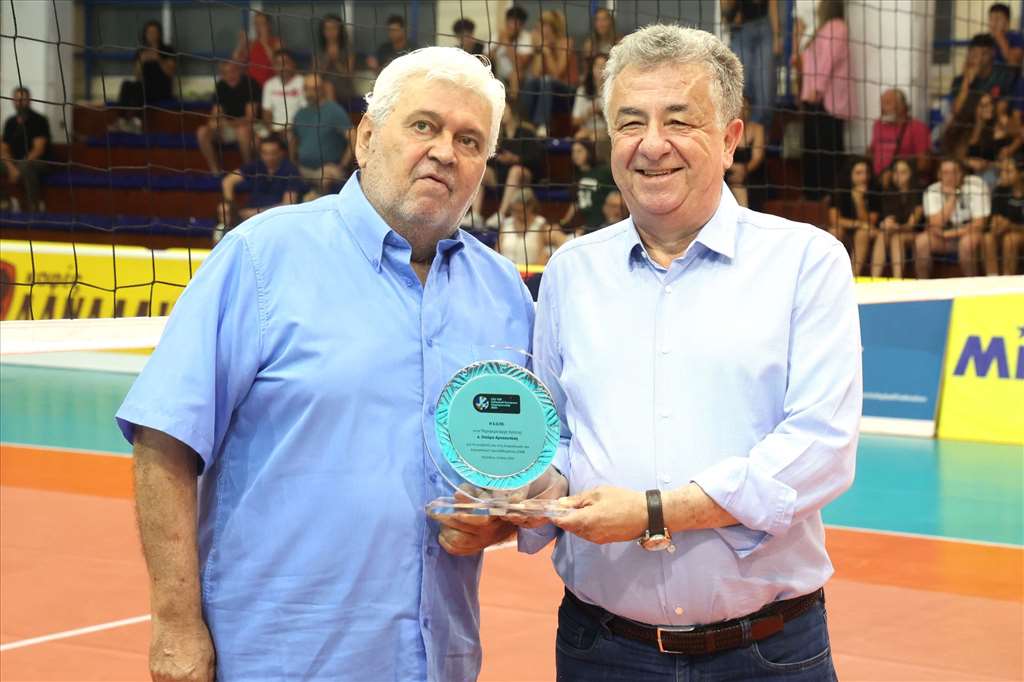 Τον Περιφερειάρχη Κρήτης Σταύρο Αρναουτάκη τίμησε χθες το απόγευμα ο Πρόεδρος της Πανελλήνιας Ομοσπονδίας Πετοσφαίρισης Γιώργος Καραμπέτσος για την συνολική στήριξη της Περιφέρειας Κρήτης για την διοργάνωση του Ευρωπαϊκού Πρωταθλήματος Κοριτσιών Κ18 (Κορασίδων) που πραγματοποιήθηκε με μεγάλη επιτυχία στο κλειστό του Λίντο.