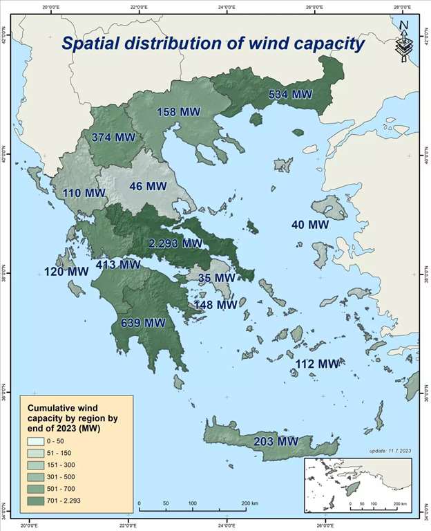 To 2023 εγκαταστάθηκαν νέες ανεμογεννήτριες μόνο σε τρεις Περιφέρειες τις χώρας: Στερεά Ελλάδα, Δυτική Μακεδονία, Θεσσαλία. Η μεγαλύτερη γεωγραφική διασπορά των αιολικών εγκαταστάσεων βοηθά τη βέλτιστη συμμετοχή της αιολικής ενέργειας στην ηλεκτροπαραγωγή, κάτι λειτουργεί προς όφελος του ενεργειακού συστήματος και του καταναλωτή.