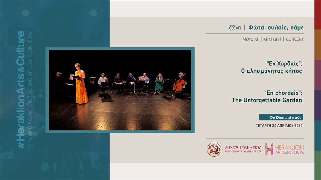 Η συναυλία «Ο αλησμόνητος κήπος» με το μουσικό σχήμα “Εν Χορδαίς” είναι πλέον διαθέσιμη στο κανάλι πολιτισμού Heraklion Arts and Culture και στη Ζώνη θέασης «Φώτα, Αυλαία, Πάμε»!