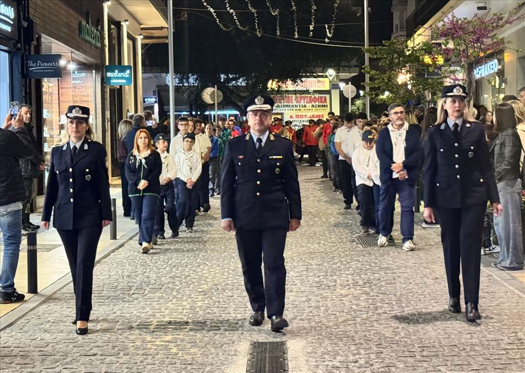 "Μέσα σε κλίμα κατάνυξης και βαθιάς συγκίνησης, κορυφώθηκε το Θείο Δράμα με την περιφορά του Επιταφίου από τον Μητροπολιτικό Ναό του Αγίου Μηνά στο Ηράκλειο. Στην πομπή προπορεύτηκαν ως είθισται Αξιωματικοί της Τροχαίας Ηρακλείου, με τον Διοικητή Καρακούδη Στέλιο και τα στελέχη της υπηρεσίας Βιδάκη Χαρά και Χριστοδουλάκη Σοφία, ανοίγοντας τον δρόμο για τη λιτανεία, με απόλυτη ευταξία και σεβασμό στο ιερό γεγονός.