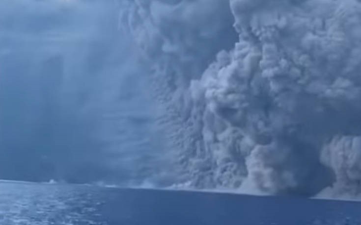 Το βίντεο έχουν τραβήξει τουρίστες που βρίσκονταν σε σκάφος στην περιοχή την ώρα της έκρηξης,