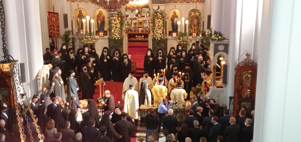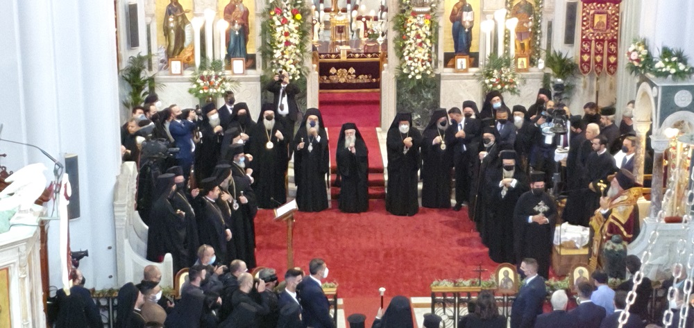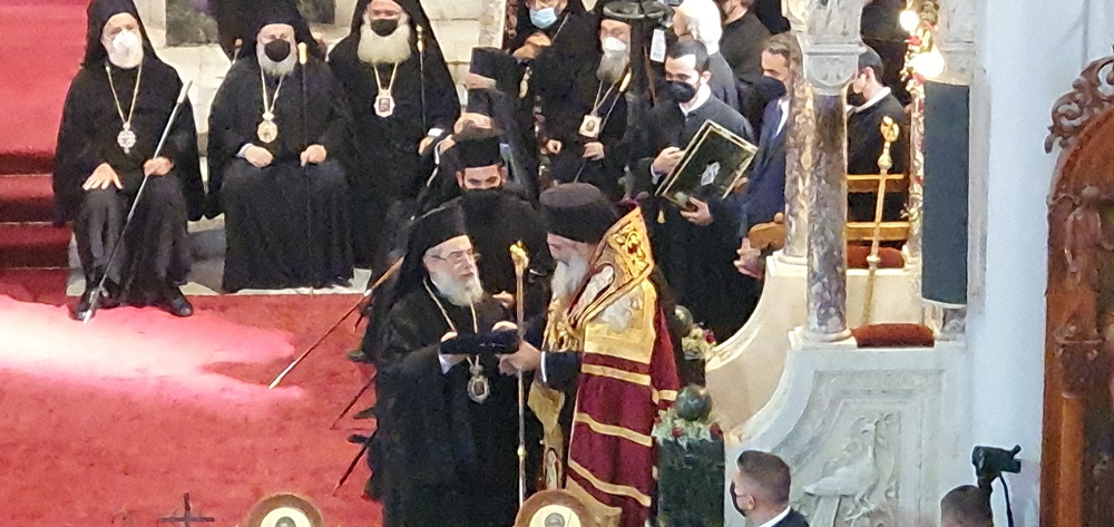 Εν συνεχεία εντός του ναού βρέθηκαν κληρικοί, εκπρόσωποι μοναστικών αδελφοτήτων, εκπρόσωποι τοπικών αρχών και φορέων που είχαν λάβει προσωπικές προσκλήσεις (λόγω των μέτρων για τον κορωνοϊό) έγινε η τελετή της ενθρόνισης όπου μετά την ολοκλήρωσή της, ακολούθησε η ενθρονιστήρια ομιλία του νέου αρχειπισκόπου.