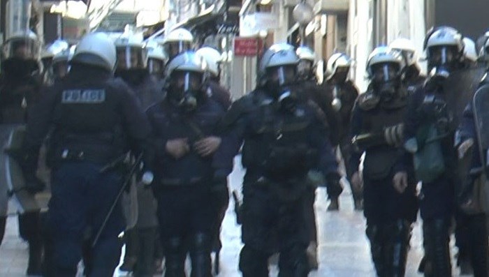 Τα πράγματα ξέφυγαν και αρχικά οι αστυνομικοί έκαναν πίσω βήματα για να μην τραυματιστούν από τις συνεχείς ρίψεις αντικειμένων σε βάρος τους.