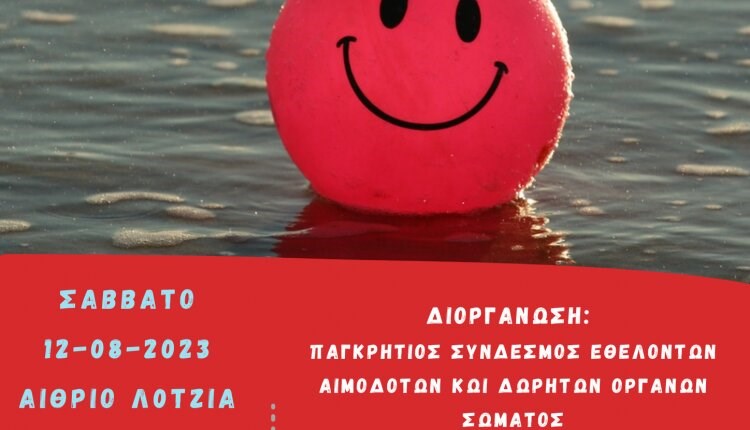Εθελοντική αιμοδοσία θα πραγματοποιηθεί το Σάββατο 12/08/2023 στο κέντρο της πόλης του Ηρακλείου και συγκεκριμένα στο αίθριο της Λότζια από τις 9:30 έως τις 14:00.