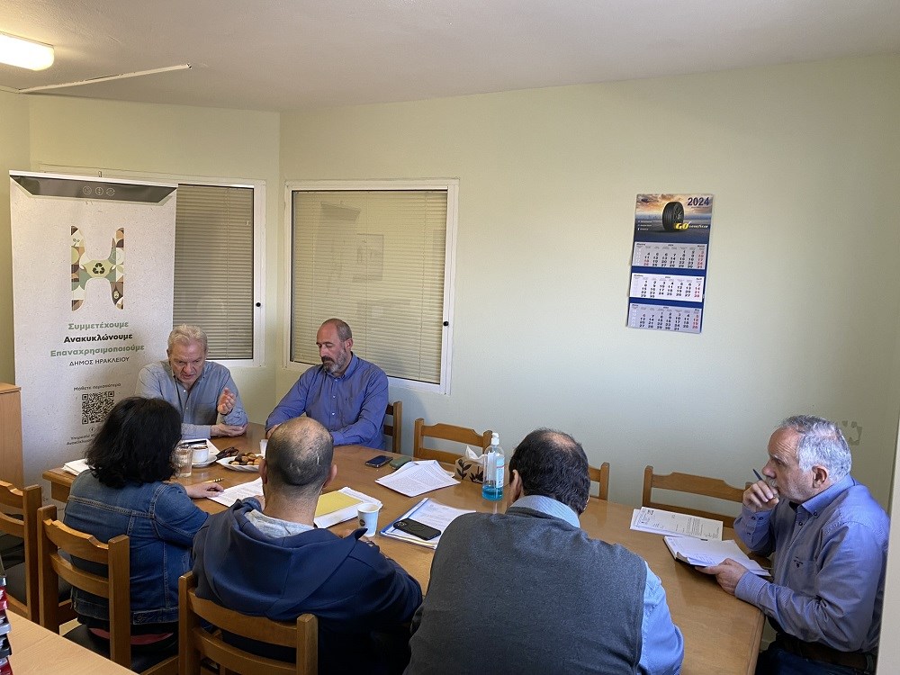 Ευρεία σύσκεψη με θέμα τον συντονισμό των δράσεων που αφορούν στη διαχείριση των απορριμμάτων πραγματοποιήθηκε από το Δήμαρχο Ηρακλείου Αλέξη Καλοκαιρινό, με τη συμμετοχή του αρμόδιου Αντιδημάρχου Καθαριότητας, Περιβάλλοντος και Ενέργειας Νίκου Γιαλιτάκη στην Υπηρεσία Καθαριότητας την Τετάρτη 17/4.