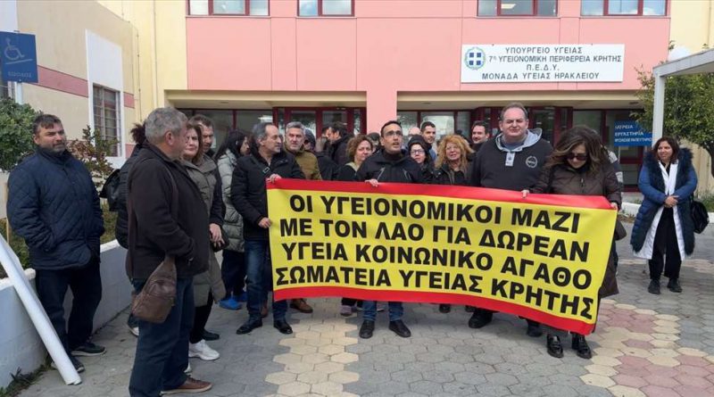 Ηράκλειο: Μαζική παράσταση διαμαρτυρίας πραγματοποιήθηκε στα γραφεία της 7ης Υ.ΠΕ