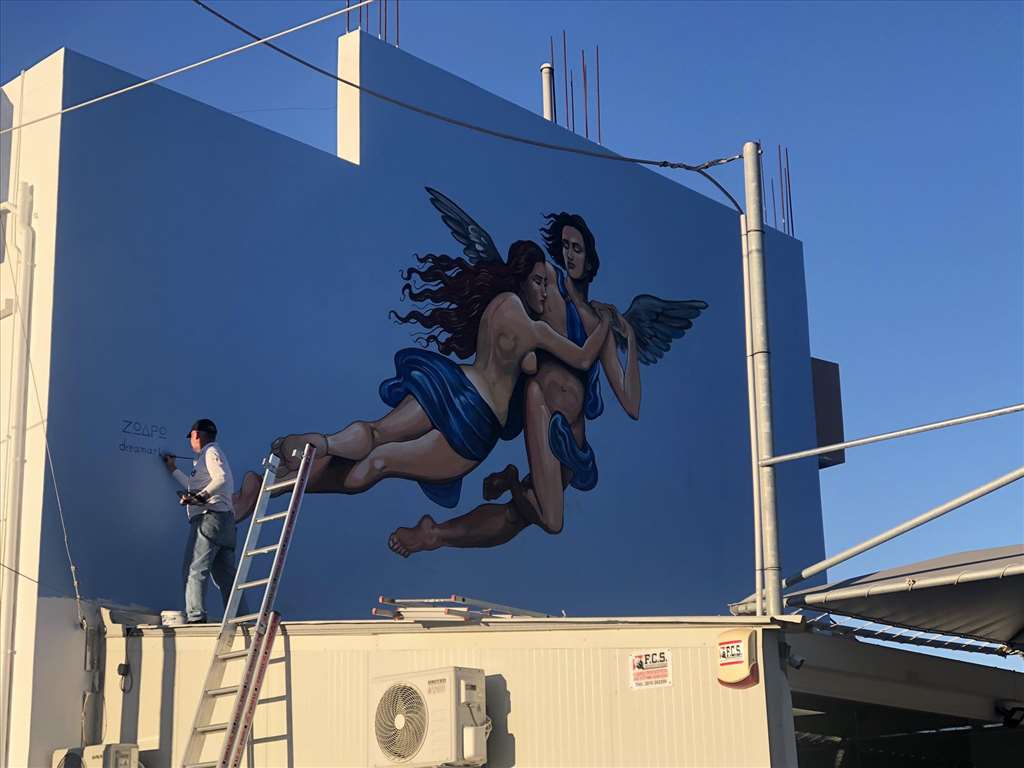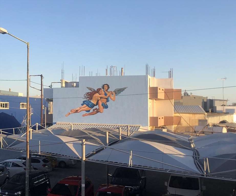 Η τοιχογραφία που έχει συγκεντρώσει όλα τα βλέμματα, βρίσκεται επι της λεωφόρου Ικάρου.
