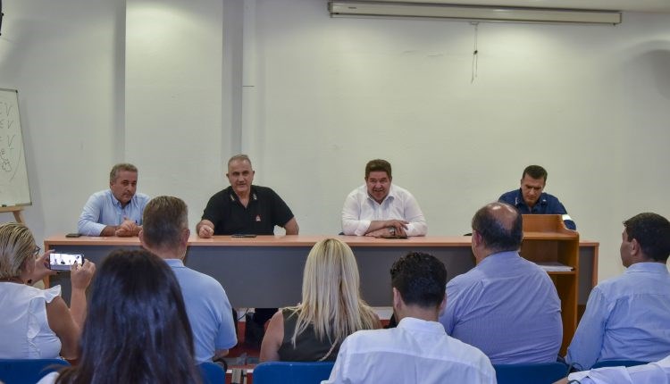 Με τον Περιφερειακό Διοικητή Πυροσβεστικών Υπηρεσιών Κρήτης, Αρχιπύραρχο Γεώργιο Τσικαλά και εκπροσώπους σωματείων πυροσβεστών του Ηρακλείου συναντήθηκε ο Υποψήφιος Δήμαρχος Ηρακλείου και επικεφαλής της παράταξης «Ηράκλειο, η Πόλη μας», Μιχάλης Καραμαλάκης. Συνοδευόμενος από Υποψηφίους του συνδυασμού ενημερώθηκε για τα προβλήματα που αντιμετωπίζουν οι πυροσβέστες στο Δήμο Ηρακλείου και αφορούν στην έλλειψη προσωπικού, στο κτιριακό αλλά και στην υλικοτεχνική υποδομή.