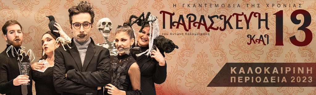 Μετά την επιτυχημένη παράσταση της περσινής σεζόν «οι Α.Υ.Τ.Ο.Ι. που θα αλλάξουν τον κόσμο», ο Αντώνης Καλομοιράκης επιστρέφει με την ολοκαίνουρια κωμωδία του με τίτλο «Παρασκευή & 13». Και δεν είναι αυτό που νομίζεις. Ένα ταξίδι για τη ζωή γεμάτο γέλιο σε ένα σύμπαν … που δεν το περιμένει κανείς.