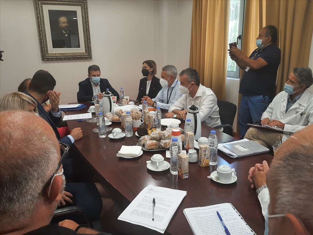 Στη συνέχεια πραγματοποιήθηκε σύσκεψη με τη Διοίκηση του νοσοκομείου. Οι εργαζόμενοι του νοσοκομείου την ίδια ώρα προχώρησαν σε στάση εργασίας και συγκέντρωση διαμαρτυρίας, κρατώντας πανό και φωνάζοντας συνθήματα ενώ ζητούσαν συνάντηση με τον υπουργό κάτι που ωστόσο δεν συνέβη.