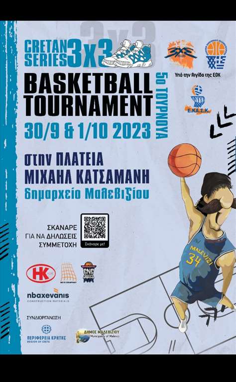 Η διοργάνωση 3Χ3 basket “Cretan Series” συνεχίζεται , με τελευταίο σταθμό το Δήμο Μαλεβιζίου. Οι αγώνες θα πραγματοποιηθούν το Σάββατο 30 Σεπτεμβρίου και την Κυριακή 1 Οκτωβρίου στο Γάζι, στην πλατεία Μιχαήλ Κατσαμάνη.