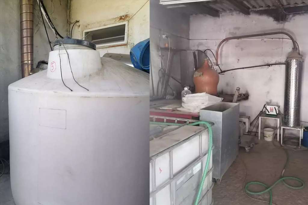 Τα αντικείμενα που καταγράφηκαν καταδεικνύουν, αφενός την εγκατάσταση πλήρους συστήματος αποστακτηρίου και αφετέρου, οι κενές παλετοδεξαμενές και βαρέλια συνολικής χωρητικότητας 12.000 Lt με υπολείμματα αλκοολούχου ποτού, αφετέρου την προγενέστερη του ελέγχου παραγωγή και διάθεση σε άγνωστο αγοραστή μεγάλων ποσοτήτων άγνωστου αλκοολούχου ποτού παράνομα αποσταγμένου για τις οποίες δεν αποδόθηκαν οι αναλογούντες δασμοί και λοιποί φόροι.