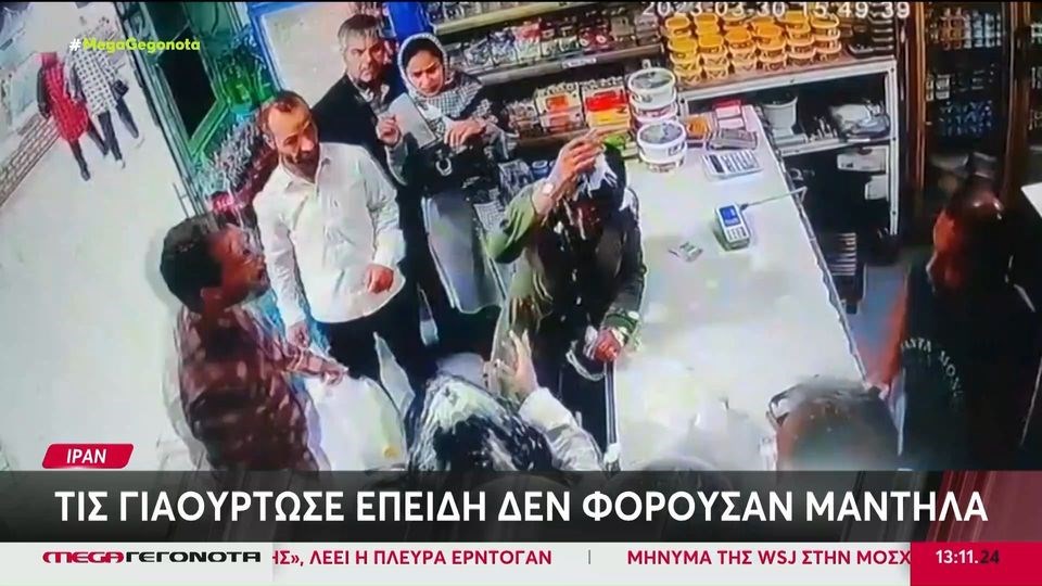 Σε ένα γαλακτοπωλείο στην πόλη Μασχάντ ο άνδρας γιαουρτώνει τις δυο γυναίκες.