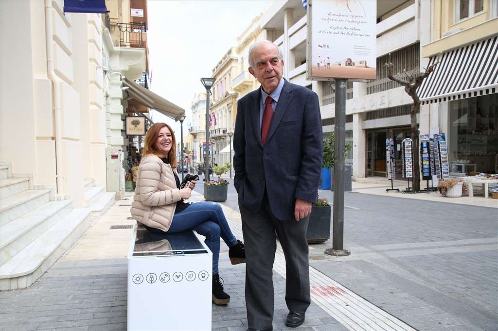 Στην τοποθέτηση τεσσάρων «έξυπνων» ηλιακών πάγκων προχώρησε την Τετάρτη 20 Μαρτίου ο Δήμος Ηρακλείου, στο κέντρο της πόλης.