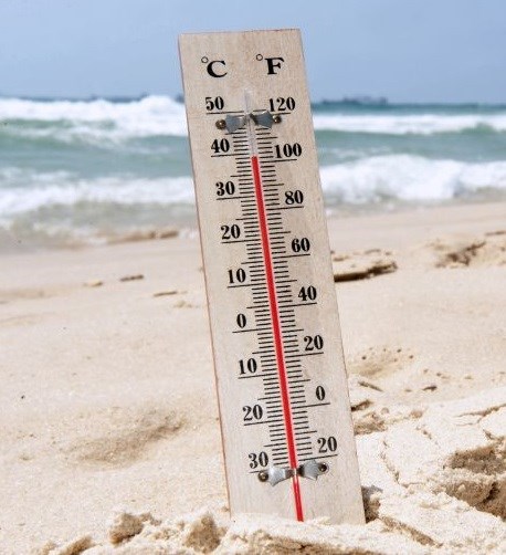 γ. στη νησιωτική χώρα τους 32 με 33 και στα νησιά του Ιονίου, τα Δωδεκάνησα και τη νότια Κρήτη τους 35 βαθμούς Κελσίου.