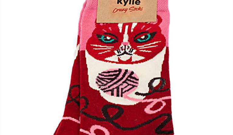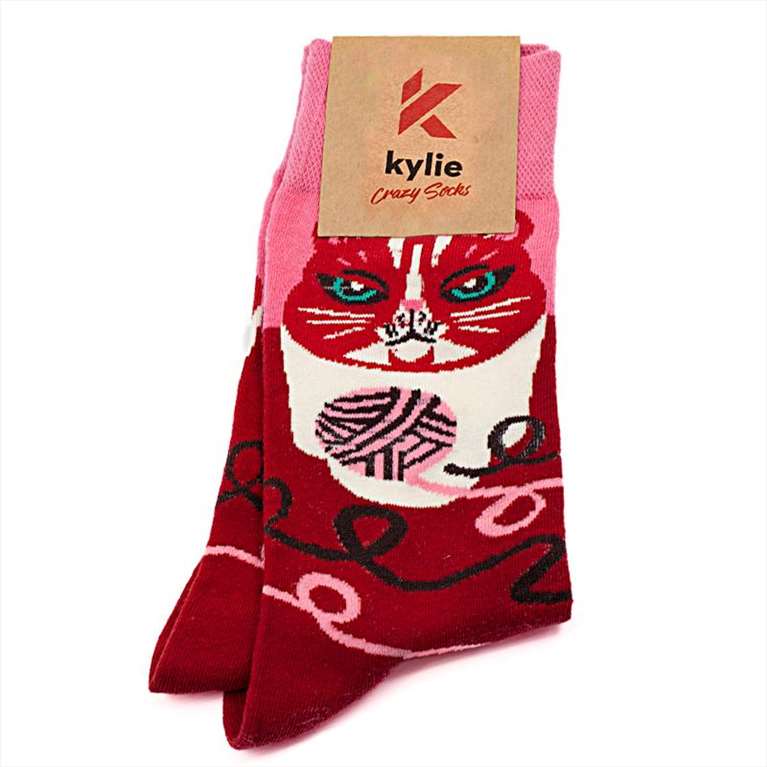 Κάλτσες One Size Kylie Crazy Socks, από ύφασμα. Ένα μοναδικό σχέδιο με γατούλα, που θα κλέψει τις εντυπώσεις.