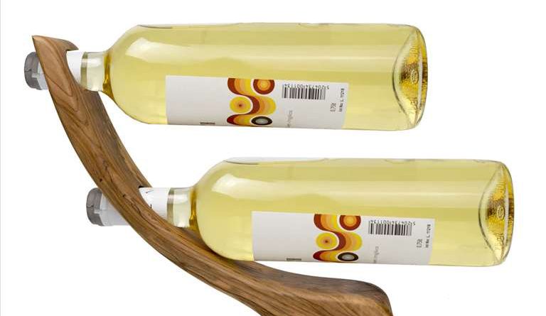 Επιτραπέζια βάση κρασιού για δυο μπουκάλια κατασκευασμένη από ξύλο ελιάς. Χειροποίητη κάβα με δυο υποδοχές για μπουκάλια, ανθεκτική και διαχρονική