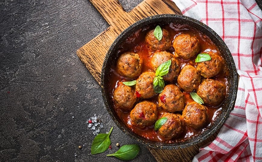Μεταφέρετε τα κεφτεδάκια σε ένα τηγάνι και προσθέστε τη σάλτσα ντομάτας. Καλύψτε και μαγειρέψτε μέχρι η σάλτσα να πήξει. Γαρνίρετε με μαϊντανό αν θέλετε.