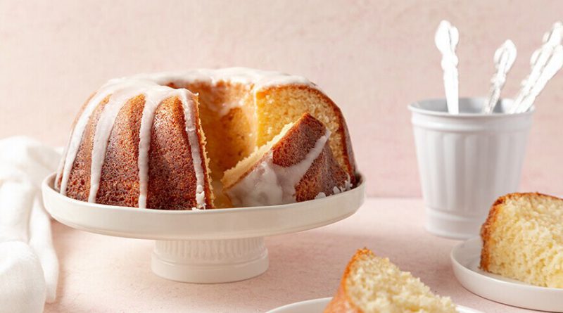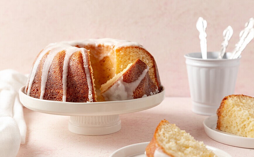 Για να φτιάξετε το γλάσο, χτυπήστε ελαφρά το γάλα και τη ζάχαρη άχνη μαζί. Λιώστε τη σοκολάτα σε ένα μπολ στο φούρνο μικροκυμάτων για 1 λεπτό. Αφήστε να κρυώσει λίγο και μετά προσθέστε στο μείγμα του γάλακτος. Ανακατέψτε και ρίξτε με το κουτάλι το γλάσο πάνω από το κέικ.