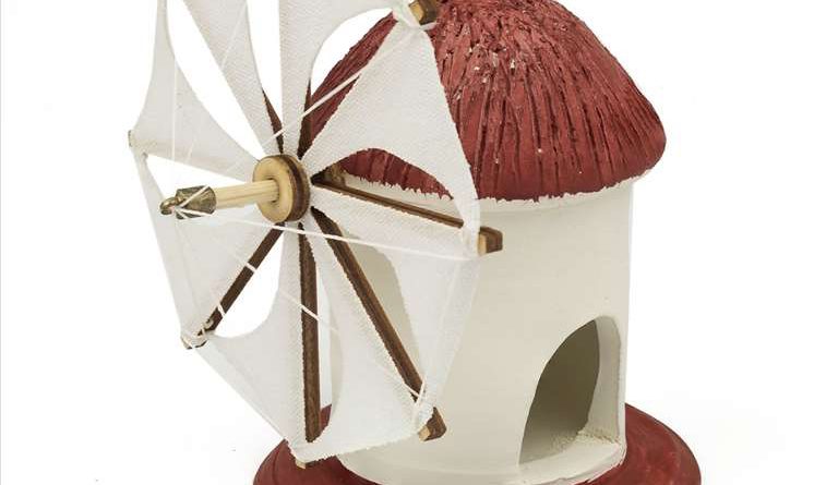 Χειροποίητος πήλινος Αλευρόμυλος, ακριβές αντίγραφο των Ελληνικών Αλευρόμυλων σε κεραμιδί χρώμα με υφασμάτινα πανιά που γυρνάνε! Αποτελεί υπέροχο διακοσμητικό και αναμνηστικό!