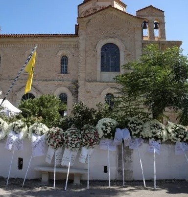 Η σορός του 34χρονου πιλότου έφτασε στον ναό τυλιγμένη με τη γαλανόλευκη σημαία.
