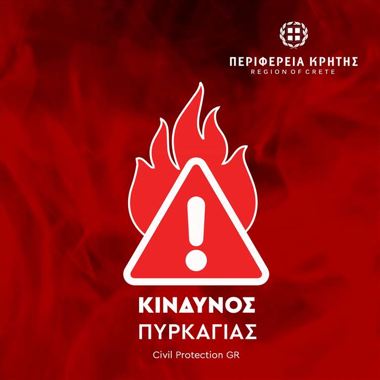 Η Πολιτική Προστασία Περιφέρειας Κρήτης ενημερώνει ότι, σύμφωνα με τον ημερήσιο Χάρτη Πρόβλεψης Κινδύνου Πυρκαγιάς της Γενικής Γραμματείας Πολιτικής Προστασίας για αύριο Τετάρτη 3η Ιουλίου 2024 η κατηγορία Κινδύνου Πυρκαγιάς για την Π.Ε. Χανίων, είναι κατηγορίας κινδύνου 4 (πολύ υψηλός).