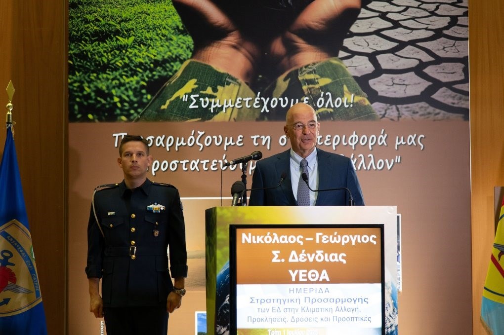 Ο Υπουργός Εθνικής Άμυνας, Νίκος Δένδιας, κήρυξε σήμερα, Τρίτη 1η Ιουλίου 2025, την έναρξη της Ημερίδας που διοργανώνεται από το ΓΕΕΘΑ στο Αμφιθέατρο της Σχολής Ικάρων, με θέμα «Στρατηγική Προσαρμογής των Ενόπλων Δυνάμεων στην Κλιματική Αλλαγή – Προκλήσεις – Δράσεις και Προοπτικές».