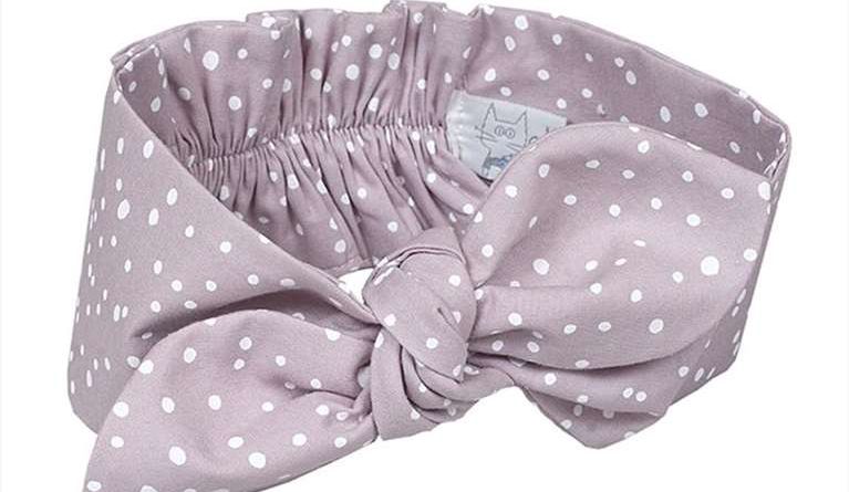 Παιδική κορδέλα για τα μαλλιά με ελαστικό ύφασμα και χαρούμενο σχέδιο Dots Dusty Pink.