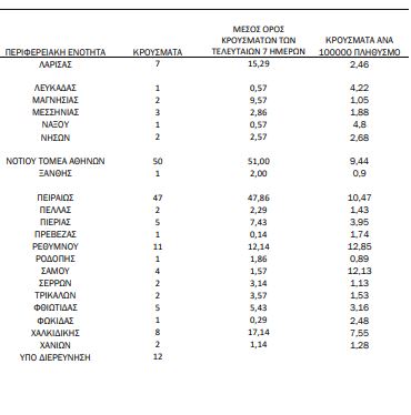 Τα κρούσματα ανά Περιφερειακή Ενότητα