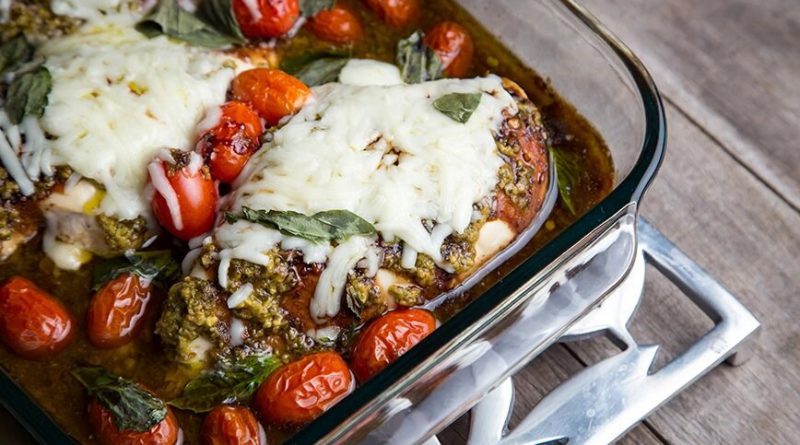 Τοποθετήστε τα ντοματίνια πάνω από το κοτόπουλο και σερβίρετε.