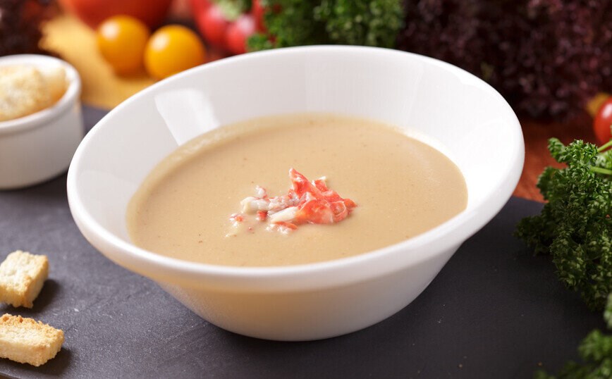 Κρεμώδης σούπα μπισκ με γαρίδες και καβούρι