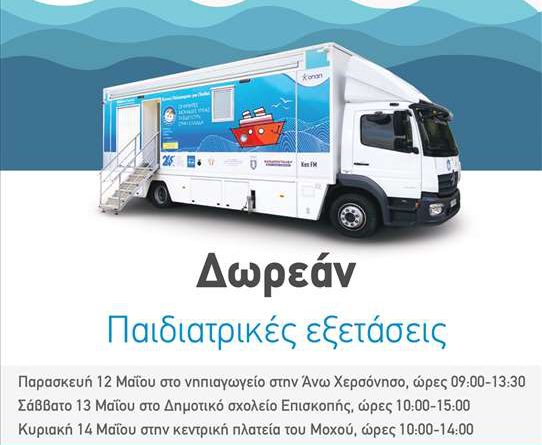 Οι γιατροί που εθελοντικά συμμετέχουν στο προληπτικό πρόγραμμα θα εξετάσουν δωρεάν όλα τα παιδιά που θα επισκεφτούν την Κινητή Μονάδα του Οργανισμού.