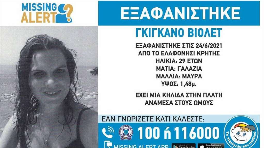 Οι ελληνικές Αρχές ειδοποιήθηκαν μόλις την περασμένη Τρίτη για την εξαφάνιση της Βιολέτ Γκιγκανό, οι γονείς της οποίας απευθύνθηκαν στις γαλλικές Αρχές όταν η κόρη τους δεν απαντούσε στα τηλεφωνήματά τους. Το πρωί της Τετάρτης στήθηκε μια γιγαντιαία επιχείρηση με τη συμμετοχή της Αστυνομίας, της Πυροσβεστικής, της εθελοντικής ομάδας Πολιτικής Προστασίας Σελίνου, εθελοντών του Ελληνικού Ερυθρού Σταυρού από το Καστέλι και του Λιμενικού που διεξήγαγε έρευνες από θαλάσσης. Στην επιχείρηση πήρε μέρος και ελικόπτερο της Ελληνικής Αστυνομίας.