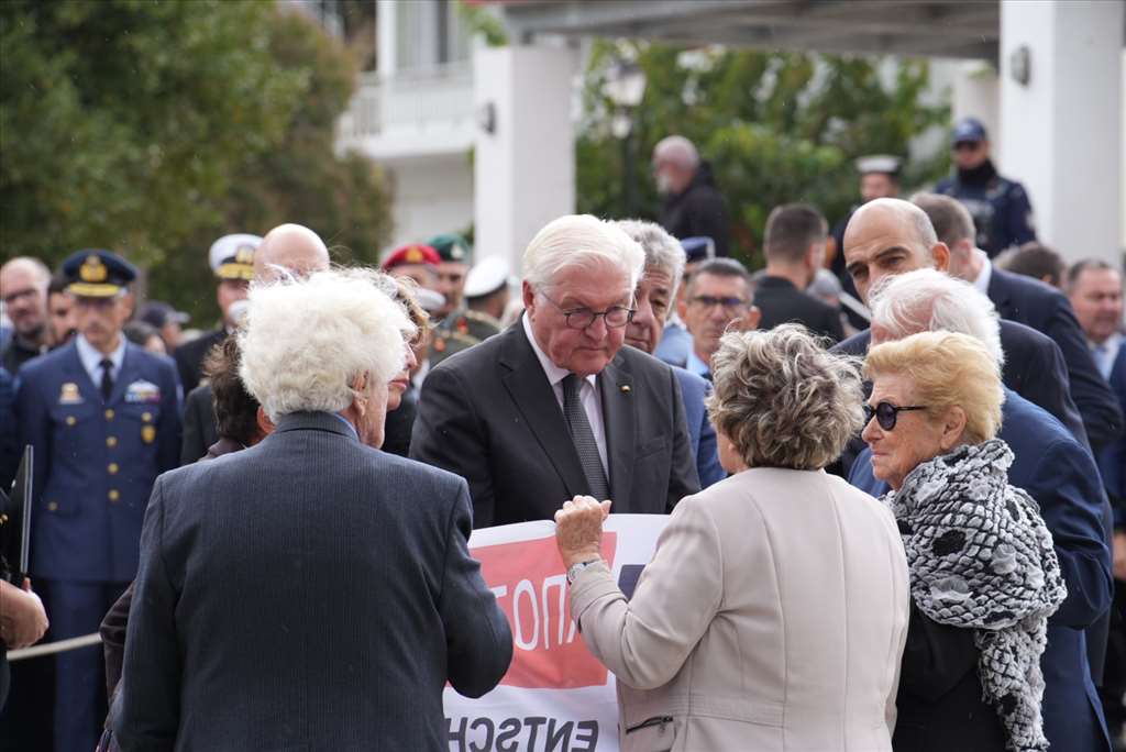 «Πριν 80 χρόνια εκτελέσατε τους γονείς μας, τώρα μας εκτελείτε για δεύτερη φορά», ακούστηκε να λέει άλλος απόγονος θύματος της κατοχής στον κ. Σταινμάγιερ.