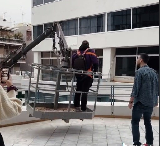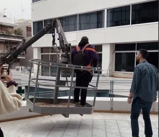 Ένας…. γερανός εμφανίστηκε στον δρόμο, με τον μαθητή να ανεβαίνει πάνω και να βρίσκεται στην αίθουσα ως διά μαγείας. Οι συμμαθητές του αλλά και ο καθηγητής, σαστισμένοι, δεν μπόρεσαν να συνειδητοποιήσουν τι συνέβη ακριβώς μπροστά στα μάτια τους.