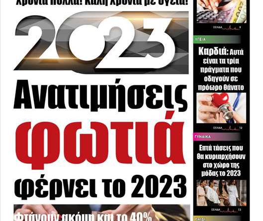 Κυκλοφορεί σήμερα Δευτέρα 2/1/2023 η εβδομαδιαία έντυπη έκδοση της εφημερίδας ΤΥΠΟΣ ΚΡΗΤΗΣ. Δείτε το πρωτοσέλιδο!!!