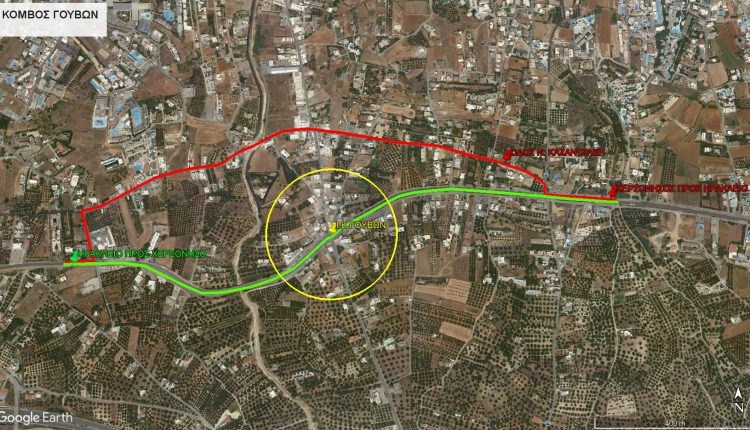 Κυκλοφοριακές ρυθμίσεις λόγω έργων στον ισόπεδο κόμβο Γουβών επί της παλαιάς εθνικής οδού Ηρακλείου