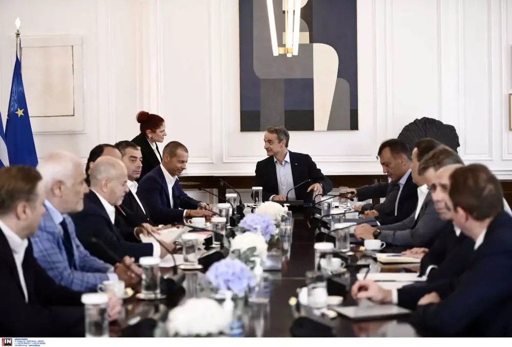 Ολοκληρώθηκε η συνάντηση του Κυριάκου Μητσοτάκη με τον Αλεξάντερ Τσέφεριν και τους εκπροσώπους του Ολυμπιακού, του Παναθηναϊκού, της ΑΕΚ και του ΠΑΟΚ στο Μέγαρο Μαξίμου, για την οπαδική βία μετά τα αιματηρά επεισόδια στη Νέα Φιλαδέλφεια με τους χούλιγκαν της Ντινάμο Ζάγκρεμπ και τη δολοφονία του 29χρονου Μιχάλη Κατσούρη.