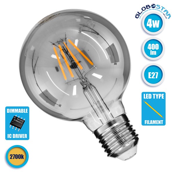 Λάμπα E27 G95 Γλόμπος LED FILAMENT 4W 400 lm 320° AC 85-265V Edison Retro με Φιμέ Γυαλί Θερμό Λευκό 2700 K 99069