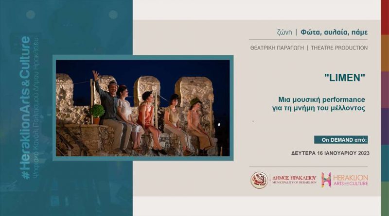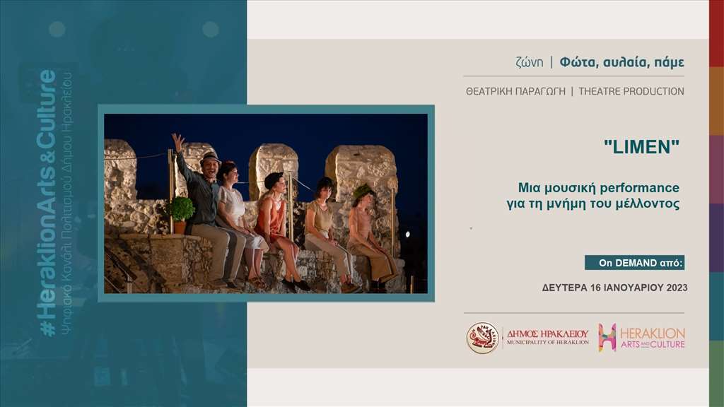 Η μουσική performance «Limen» που παρουσιάστηκε για πρώτη φόρα στις 7 και 8 Αυγούστου 2022 στο Θαλάσσιο Φρούριο Ενετικού Λιμένος Ηρακλείου (Κούλες), στο πλαίσιο του θεσμού “Όλη η Ελλάδα ένας Πολιτισμός” του Υπουργείου Πολιτισμού και Αθλητισμού με την υποστήριξη του Δήμου Ηρακλείου- Αντιδημαρχίας Πολιτισμού είναι πλέον διαθέσιμη στο ψηφιακό κανάλι πολιτισμού του Δήμου Ηρακλείου Heraklion Arts and Culture, στη ζώνη θέασης «Φώτα, Αυλαία, Πάμε» και στον παρακάτω σύνδεσμο: https://youtu.be/e_A8b11ZYLg