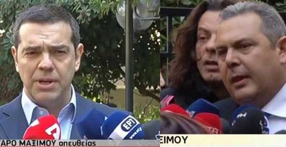 "Ευχαρίστησα τον πρωθυπουργό για τη συνεργασία και του εξήγησα, ότι για το θέμα το εθνικό δεν μπορεί να συνεχιστεί αυτή η συνεργασία. Οι ΑΝΕΛ, αποχωρούν από την κυβέρνηση" κατέληξε ο κ. Καμμένος.