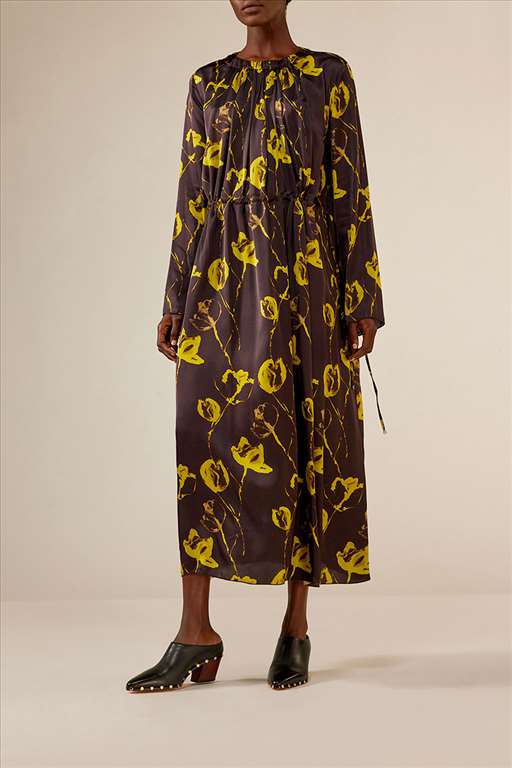 LIVIANA CONTI Printed Maxi Καφέ Φόρεμα Με Λουλούδια