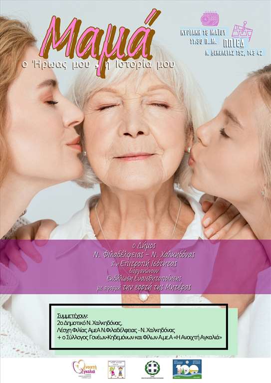 Ο Δήμος Νέας Φιλαδέλφειας-Νέας Χαλκηδόνας και η Επιτροπή Ισότητας, με αφορμή την γιορτή της Μητέρας, διοργανώνουν την Κυριακή 18 Μαΐου 2025 στις 11:30 π.μ. στο Π.Π.Ι.Ε.Δ (Λεωφόρος Δεκελείας 152 ΤΚ 14342) εκδήλωση ευαισθητοποίησης με τίτλο: «Μαμά ο Ήρωας μου, η Ιστορία μου».