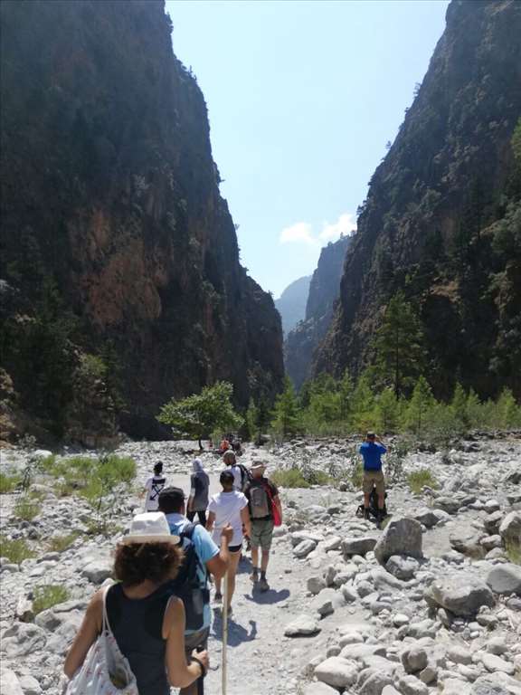Νωρίς το πρωί μετά από ένα γερό πρωινό και με αρχηγό το Γιώργο Γεωργαντά, ξεκινήσαμε να περάσουμε το φαράγγι, όπου η επιβλητικότητα του τοπίου και η δημιουργικότητα της φύσης, μας άφησε για μια ακόμα φορά άφωνους ! Κάθε φορά που το περνά κανείς, βιώνει και μια καινούργια εμπειρία και ειλικρινά θεωρώ άτυχους, όσους ακόμα μπορούν και δεν το έχουν περάσει ! Όλοι χωρίς κανένα πρόβλημα βγήκαμε στην Αγία Ρουμέλη, κουρασμένοι μεν, αλλά με ένα μεγάλο χαμόγελο ζωγραφισμένο που τα καταφέραμε για πρώτη ή για ακόμα μία φορά ! Παράλληλα όσοι δεν πέρασαν το φαράγγι μεταφέρθηκαν με το πούλμαν του ξενοδοχείου από μια εξαιρετική διαδρομή μέσα στο πράσινο και την αγριάδα του τοπίου στη Σούγια όπου περίμενε το καραβάκι για Αγία Ρούμελη.